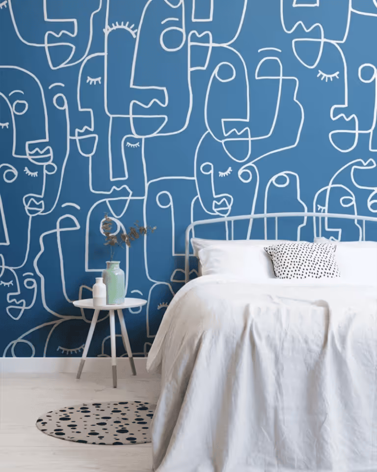 Abstract pints such as Features Vallarta Blue look fresh and inspiring when paired with simple bright whites and monochrome details. The hand-drawn design is exciting enough to create intrigue without being garish or over the top.