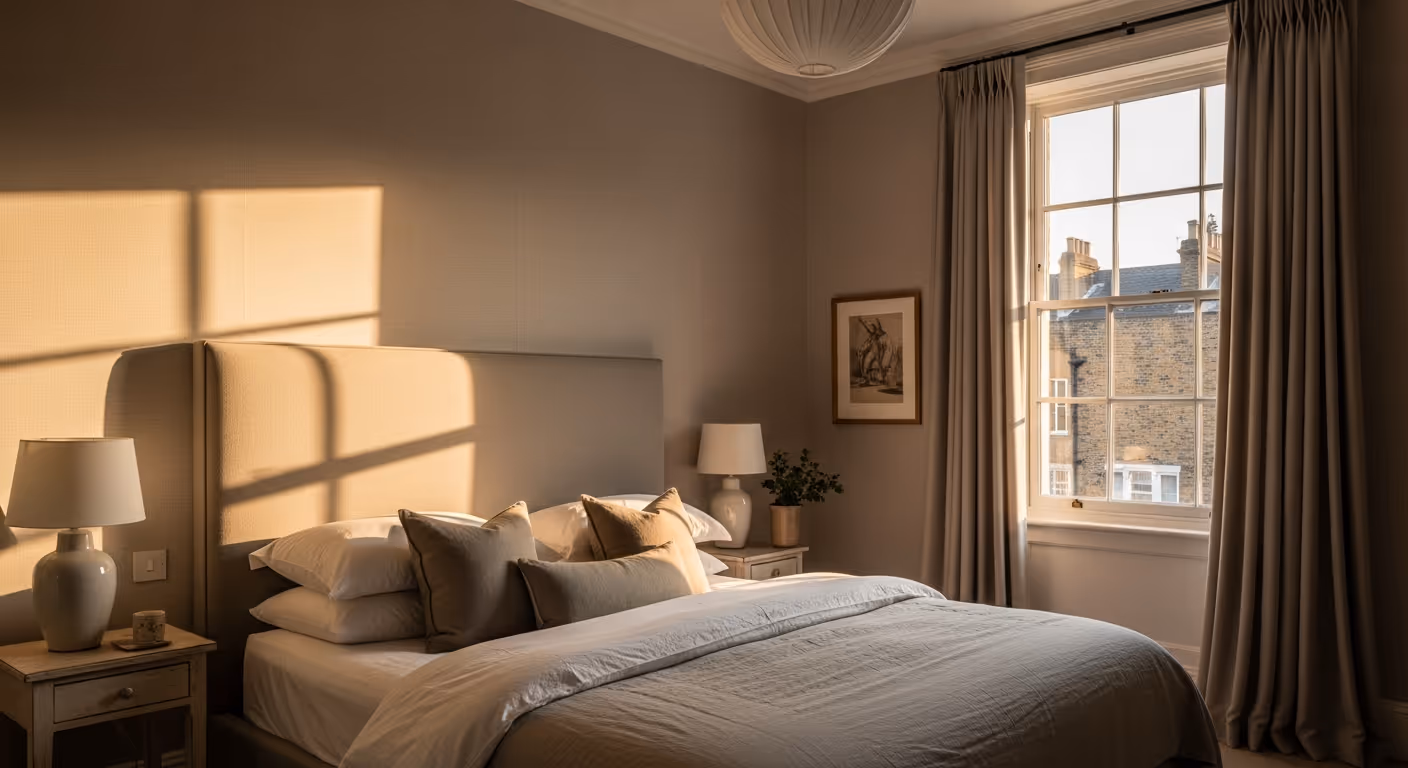 Prime Central London homes often have a mix of north, south, and west facing rooms. A good scheme keeps the whole house feeling coherent while still respecting each light type.