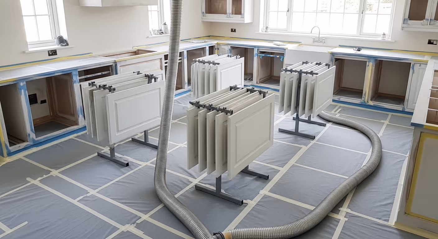 Can you respray inside the house? Yes. We use clean masking, extraction, and low odour systems. For larger door counts, we may spray doors off site and frames on site.