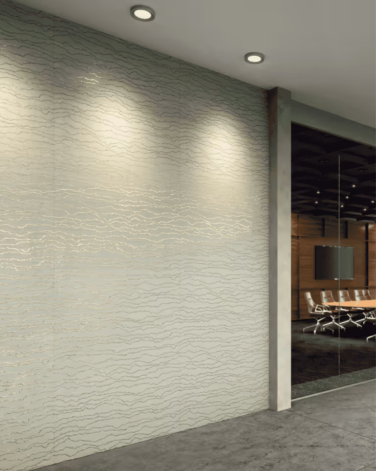 Like the Sunset pattern we featured earlier, this design absolutely ignites when interacting with light, with its shimmering gold waves elevating the entire space.