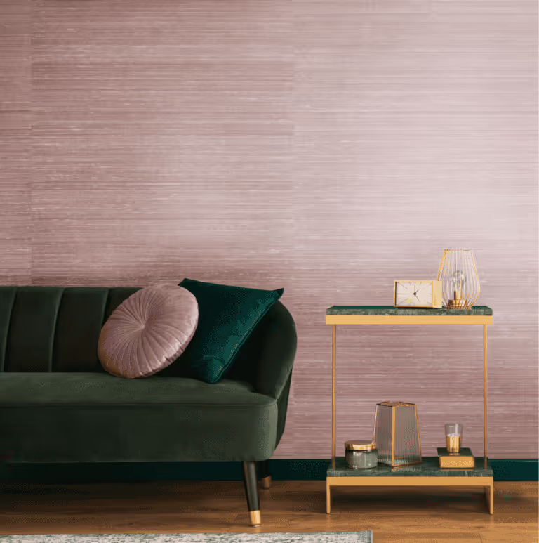Use three sheets on feature walls to immerse yourself in calm or pair with deep velvet greens and flat gold accessories for a bolder, more energising look.