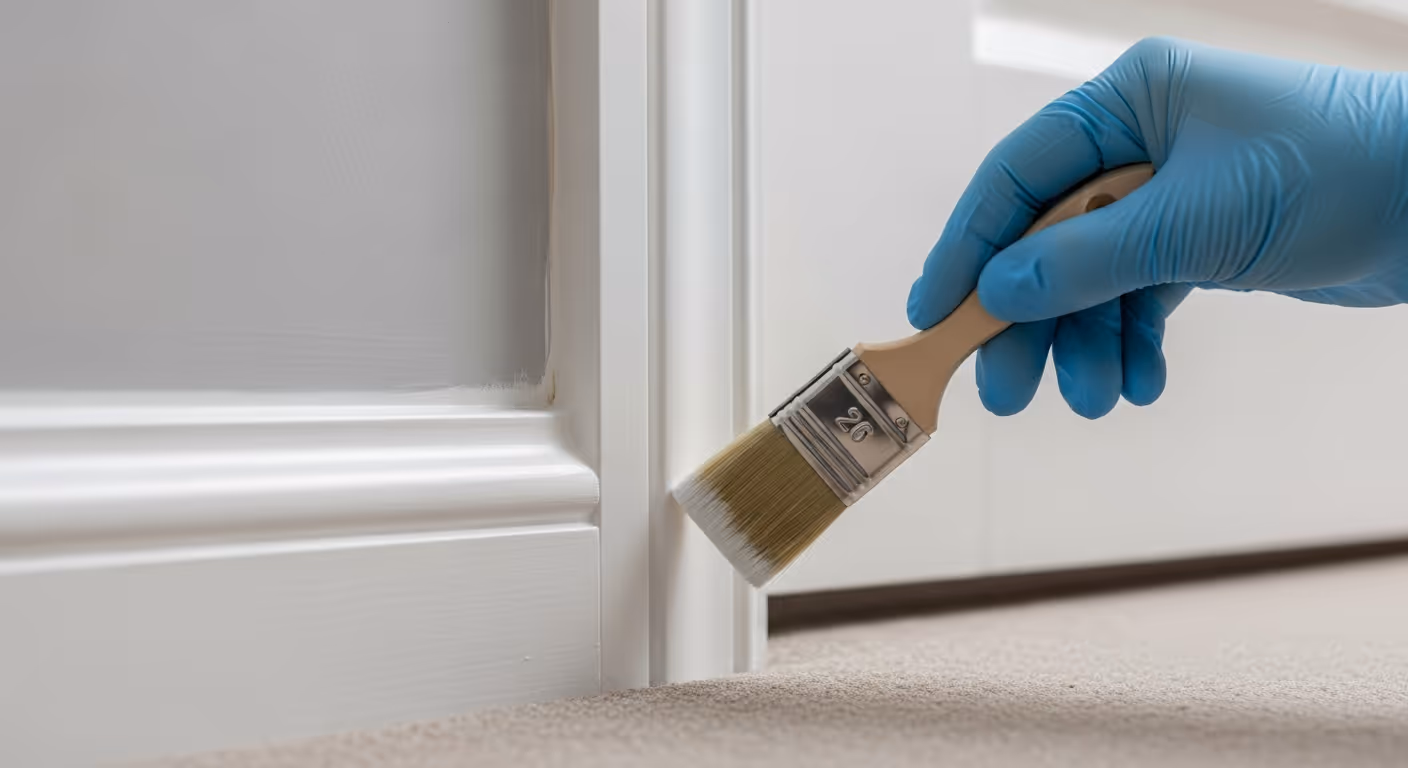 Protection matters. Floors should be covered properly, furniture grouped and covered neatly, and a clean route kept open where possible. If you are doing walls at the same time, woodwork planning should be built into the sequence so lines stay crisp.