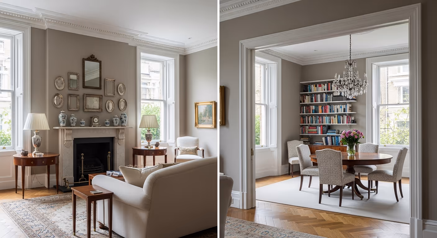 Notting Hill homes often mix strong character with changing light. A single property can include a bright upper floor bedroom, a shaded hallway, a warm reception room, and a lower level room that behaves very differently from the rest of the house.