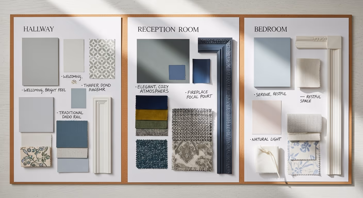 This is why a repaint plan should start with the house as a whole. If you decide each room separately, the scheme can drift very fast.