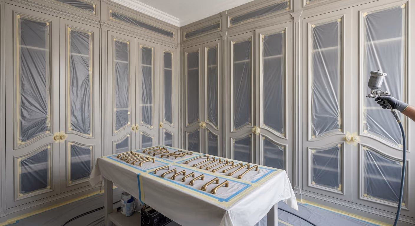 The spray finish only looks luxurious when the preparation underneath is correct. If the doors are greasy, chipped, or uneven, the final coat will not hide that. In fact, a very smooth top coat can make hidden flaws easier to notice.