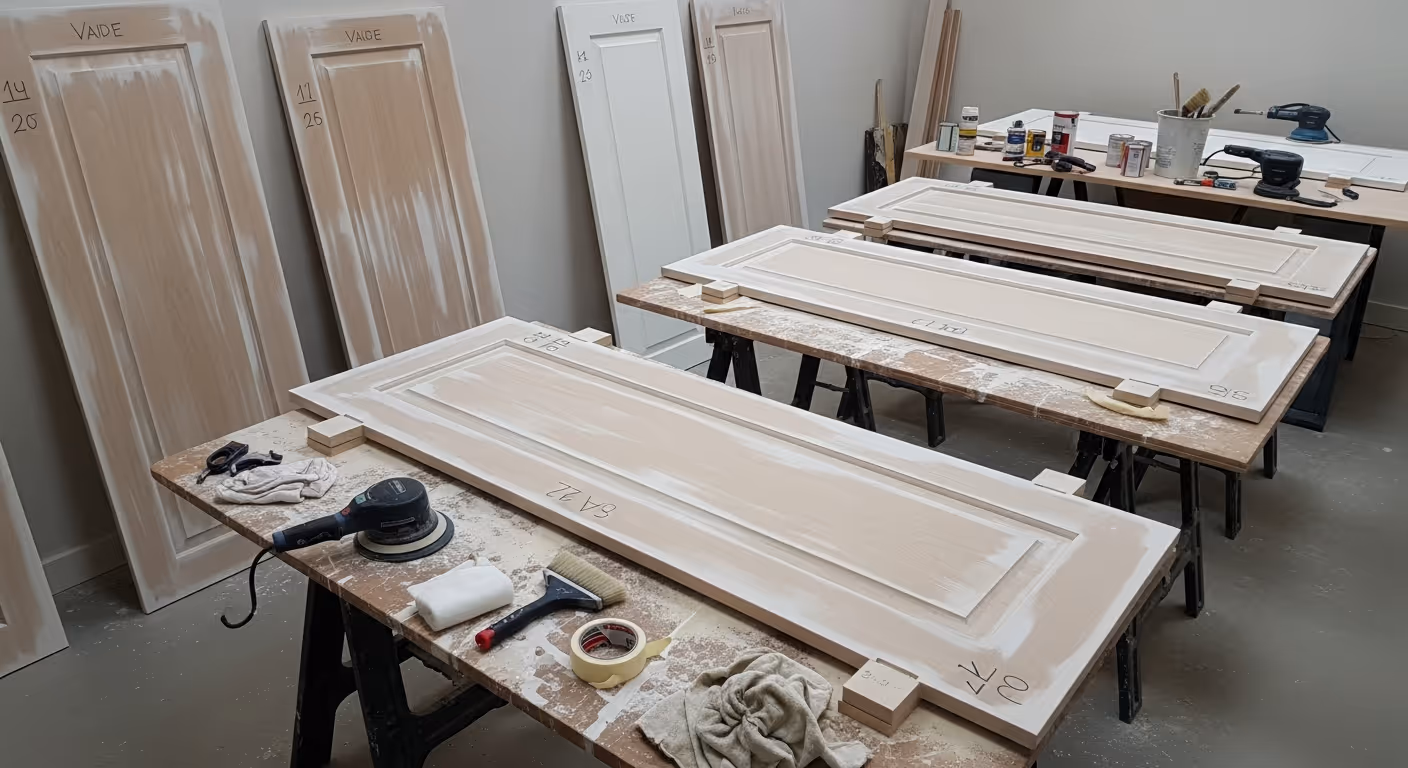 These are often the strongest candidates because the large uninterrupted faces show every surface defect. Spraying can make them feel much more modern and precise.
